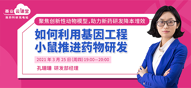 | 那么,如何利用小鼠模型了解疾病通路并且设计治疗干预措施?如何用人源化小鼠模型进行药物的PK/PD、功效研究以及药物的临床前风险评估?这些问题都将由赛业生物研发部经理孔珊珊在3月25日(周四)晚7点的直播课程中为大家解答。参与课程互动还有机会抽中赛业生物大礼包一份,快长按下方二维码免费报名参加课程吧~ |