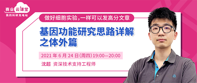 | 针对上述问题,赛业生物资深技术支持工程师沈超将结合实际研究案例,在2021年6月24日(周四)晚上7点的直播课程中为大家讲解基因功能的研究策略,以及我们该如何着手进行实验的设计和遇到问题我们该如何解决。参与课程互动还有机会抽中赛业生物精美礼盒一份,快长按下方二维码免费报名参加课程吧! |