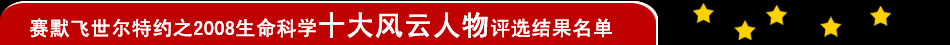 在2008这个不平凡的年度里,科技人物推动着生命科学发展的巨轮在滚动,他们的举动或造福全人类,或解开纷繁复杂的生命真相,或改变人类的生存质量,给生命科学领域带来变化。2008年岁末,让我们在生物通的引导下追寻科技人物的轨迹,透过风云人物触摸生命科学领域的灵魂,洞悉生命科学领域的变迁。