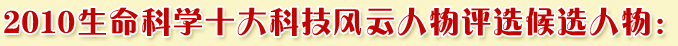 1、评选范围:活跃在2010年生命科学领域舞台的华人科学家 2、评选方法:由各杂志社及上届风云人物推荐,并结合网友推荐的候选人物,生物通编辑部精选出多位风云人物(欢迎读者另外来信推荐您心目中的风云人物人选,邮箱:journal@ebiotrade.com),采用网络投票形式,在为期一个半月的时间里,读者对候选人物进行投票,并最终结合专家意见,选出2010年生命科学领域最具影响力的十大风云人物。 3、投票成功后经过随机选择,幸运读者将获得生物通送出的礼物。