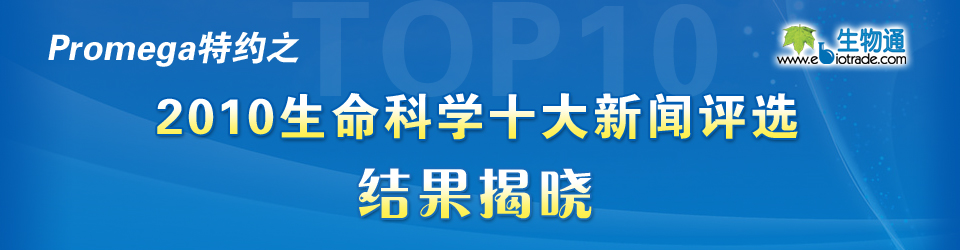 从2005年伊始,生物通就联合多家网站和学术机构成功举办了五届“生命科学十大新闻评选”的活动。自第一届“新闻评选”活动开展以来,得到了广大生命科学研究领域研究人员的关爱和支持。2010年“Promega特约之生命科学十大新闻评选”活动历时两个月,目前已落下帷幕,生物通结合读者评选情况,参考专家意见,最终评选出2010年度的十大新闻,评选结果如下(排名不分先后)。