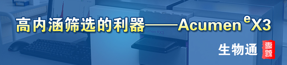 Acumen eX3是一种独特的激光扫描细胞高内涵筛选仪,可配置单色、双色或三色激光,有405nm、488nm、633nm三种激光模式可供选择,确保能与广泛的荧光探针兼容。