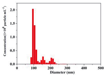 ![]() 图二、Nanosight平台分析表明,提取颗粒物粒径大多数处于100nm左右,符合预期外泌体特征 |