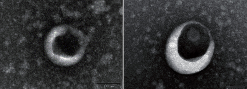 双层囊膜结构是外泌体重要标志之一,但普通光学显微镜难以观察到此种亚显微结构。而透射电子显微镜 (Transmission electron microscope, TEM) 分辨率可达0.1 ~ 0.2 nm,可将被观察物体放大至数百万倍,非常适合进行外泌体双层囊膜超微结构观测。