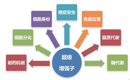![]() 图三、超级增强子参与多种生物学过程调控 |