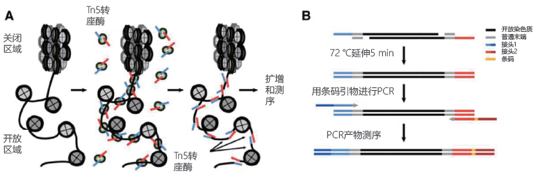 染色质开放性是指真核生物染色质DNA和转录因子等蛋白能否结合的开放程度,这一特性反映了染色质转录活跃程度等信息。2013 年由美国斯坦福大学William Greenleaf 教授报道了ATAC-seq(Assay of Transposase Accessible Chro-matin with High-throughput sequencing),即染色质开放性检测,准确率与传统方法一致,且重复性更高,只需少量细胞/ 组织,就能完成高质量的测序,是目前研究染色质开放性的最优策略。