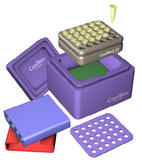细胞冻存复苏讲究的是“慢冻快融”。冻存过程中为了防止产生冰晶损害娇弱的细胞,需将细胞悬液慢慢降温至-80℃。传统方法是将冻存管置于4℃10分钟→ -20℃30分钟→ -80℃16~18小时(或隔夜)→液氮长期储存。但这个过程显得繁琐而且不能保证细胞存活率。只有将细胞悬液进行程序降温才可能有效防止冰晶产生。后来有了程序降温盒,用异丙醇填充可以进行恒速(-1℃/min)降温,但要记录异丙醇的使用次数,5-6次后需要更换新异丙醇。美国Biocision公司研发出来新一代的细胞程序降温盒——CoolCell,不需要填充异丙醇就可以匀速梯度降温(-1℃/min),备受用户青睐。目前ATCC(美国菌种保藏中心)全面采用CoolCell进行细胞冻存。另外CoolCell的细胞冻存方案已经被收入“Current Protocols in Immunology-Cryopreservation and Thawing of Cells”,作为细胞冻存的标准protocol进行推广。