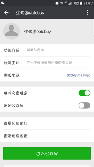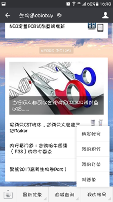 Step 1.微信搜索“生物通ebiobuy”,关注生物通商城微信公众号