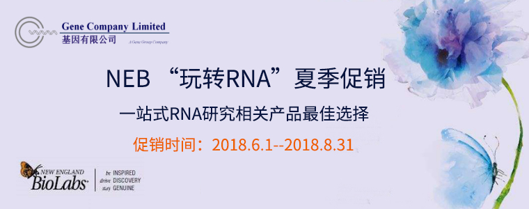 NEB 可提供一系列的研究工具助您简化您的 RNA 相关工作流程- 囊括了 RNA 纯化、定量、检测、合成及相关应用的各个领域。即日起至 2018 年 8 月31 日,RNA 体外转录、cDNA 合成、RNase 抑制剂、超保真 Q5 聚合酶系列、Luna qPCR 系列、Monarch RNA & DNA 纯化系列、RNA 连接酶& 修饰酶、RNA& 蛋白 Marker、NEBNext Ultra II RNA & Small RNA 建库试剂及相关产品、基因编辑等相关产品,冰点大促,惊爆一夏!
