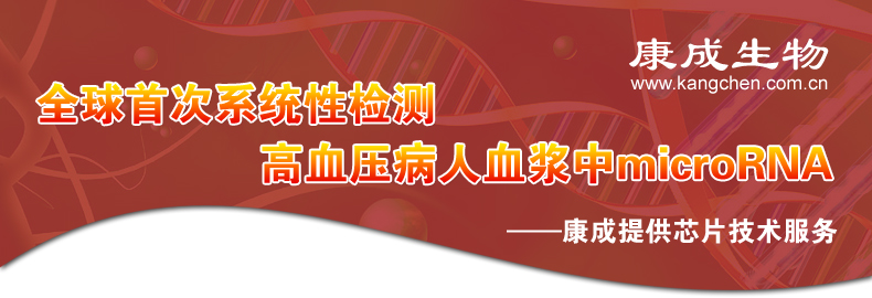 此次研究中microRNA芯片实验在康成生物公司完成。康成独家提供Exiqon LNA™ microRNA芯片全程技术服务已历经多年,拥有丰富的实验经验,实验系统稳定可靠,采用康成技术服务发表的SCI论文已超过25篇。希望了解康成生物microRNA芯片服务的更多信息可登陆网站:http://www.kangchen.com.cn/service/servicemain.asp?id=22