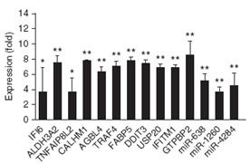 | 采用Exiqon miRNA芯片和Agilent表达谱芯,比较干扰素-a处理前后LSECs分泌的外胞体中mRNA和miRNA的表达差异。 |