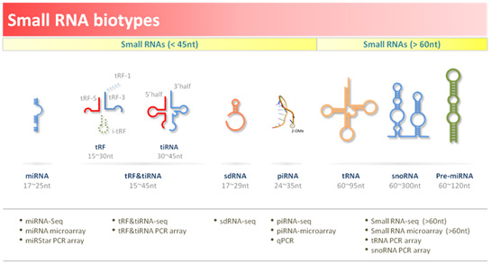 小RNA是一类长度小于200nt、不具蛋白编码能力的RNA分子,主要包含microRNA、tRF&tiRNA、sdRNA、piRNA、tRNA、snoRNA以及pre-microRNA等种类。作为重要的调控分子,小RNA在基因表达、表观遗传、疾病发生发展进程中发挥着重要功能。此外,高丰度、高稳定性和高特异性预示其在临床分子标志物(biomarker)研究中具有高潜在价值。