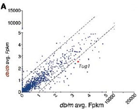 糖尿病性肾病(DN)是美国常见的糖尿病微血管并发症,也是导致晚期肾病的罪魁祸首。在DN病理相关因子的研究中发现,过氧化物酶体增殖物激活受体γ的辅因子1α(PGC-1α,由Ppargc1α 编码)在糖尿病患者体内明显低表达,该因子能够调控线粒体内容物和氧化磷酸化基因的表达,证明其在线粒体生物能和呼吸功能的调控中处于核心地位。PGC-1α 处于一个自体调节循环,参与其调节的相关因子,都与细胞能量和线粒体内稳态相关。鉴于PGC-1α是联结生理刺激与线粒体生物能的关键因子,其调控必然是严谨多层次的,一些新的调控PGC-1α的机制值得一探。lncRNA参与调控PGC-1α的角色一直鲜为人知,Farhad R. Danesh教授的主要研究目的在于揭示进化上保守的lncRNA-Tug1,调控PGC-1α的表达,并深入探讨其调控原理。