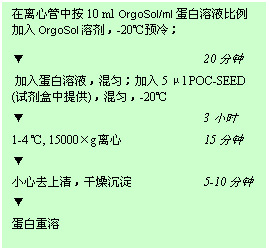对于蛋白溶液需要沉淀、并首要考虑保持蛋白溶液活性的研究者而言,OrgoSol™蛋白浓缩试剂盒是一个合适的选择。 |