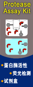 为您提供一种简单的一步法荧光定量检测蛋白酶活性的途径,本试剂盒还可用于蛋白酶抑制剂的筛选。经测试,本试剂盒适用于胰蛋白酶、弹性蛋白酶、胃蛋白酶、组织蛋白酶、金属蛋白酶、钙依赖中性半胱氨酸蛋白酶(calpain)等诸多蛋白酶。本试剂盒通过将包被有荧光标记广谱蛋白酶底物的针头浸在含有蛋白酶的溶液中,当移开固定针头的盖子时,经蛋白酶切割后的荧光底物的产物留在溶液中,通过荧光读板仪可以测得荧光强度从而确定蛋白酶活性。此试剂盒为即用型96孔板(带盖和针头),故而可用于高通量分析