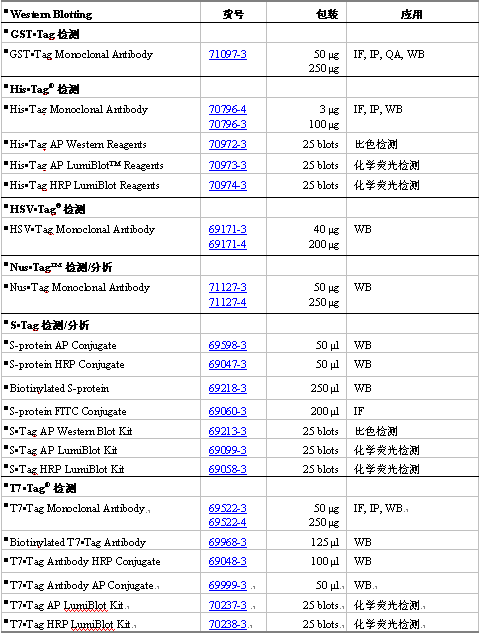 His· Taga单克隆抗体为小鼠单克隆抗体(IgG1),抗许多Novagen表达载体或许多其它商品化载体编码的His· Tag序列。该抗体识别五个连续的组氨酸残基,而不受邻近氨基酸组成的影响。高亲和力(Kd=5′10-8-1′10-9M)使得可在抗体浓度为0.1mg/ml时灵敏特异地检测His·