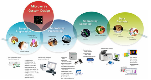 只要有基因组序列或EST序列,即可以利用Agilent公司eArray软件设计并委托Agilent公司制作客户自己的个性化芯片,时间仅需两个月。
