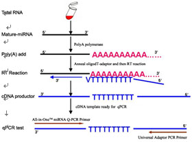 1、RNA加尾和引物延伸法,样本用量少(1μg)且不需分离miRNA。