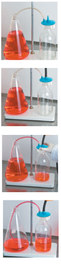 3.将 VacuCap 装置牢牢固定在滤液容器上后,开启真空泵。VacuCap 装置会牢固地密封在容器顶部,液体将会被抽出。