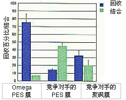 用带有Omego PES膜的Nanosep设备和常用的竞争者的膜设备来过滤和回收放射标记的BSA。