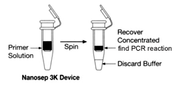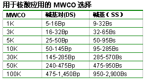 1、选择合适MWCO值的Nanosep离心管(表三)。注意:增加溶液里的溶质会减少DNA的通过,需要更大MWCO值的离心管