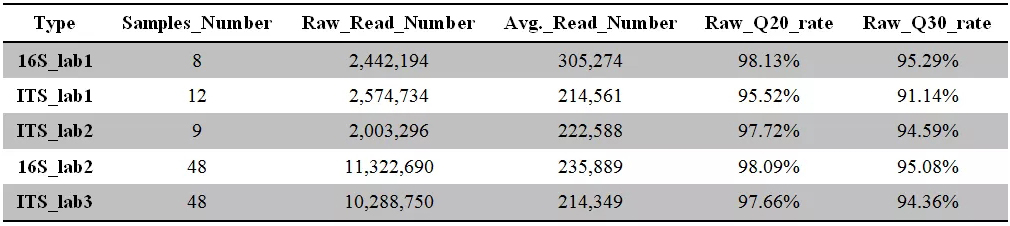 细菌16S rRNA基因与真菌ITS1基因NovaSeq测序质量表格