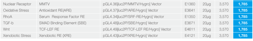 Promega金牌细胞活力和凋亡产品为您的细胞学实验和药物筛选过程带来难以置信的便捷操作和可信结果;预构建的信号通路载体满足,帮您轻松研究纷繁复杂的细胞内信号通路,并最大限度的减少您在实验前期耗费的时间; 高效转染试剂依然延续精彩折扣,助您轻松搞定转染实验!
