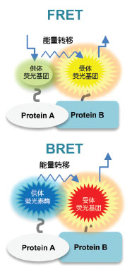 胞学检测来进行验证。而生物发光共振能量转移(BRET) 方法与荧光共振能量转移(FRET) 则是极为少数可以在活细胞水平进行蛋