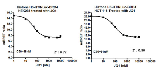 • 应用举例:检测JQ1 抑制剂对细胞中BRD4 蛋白与组蛋白Histone H.3 蛋白的相互作用的影响