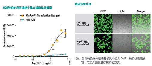 上图. 以ViaFect™ 转染试剂建立造血细胞的细胞因子信号通路模型。以ViaFect™ 转染试剂或电穿孔将pGL4.32[luc2P /NF-κB-RE/Hygro] Vector ( 一种带有