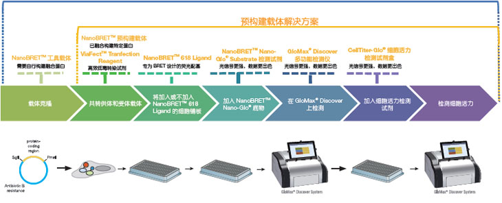 NanoBRET™ 分析是大幅度改良的BRET 分析平台,使用NanoLuc. luciferase 作为能量供体和HaloTag. 蛋白标记的NanoBRET™