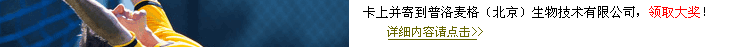 1.在促销期间,购买任意指定促销产品的组合,就可获得惊喜好礼。 2. 收集3种促销产品标签,每个促销产品包装上有一个可撕下的标签。 3.将标签贴在收集卡上 4.在收集卡上填写你的完整信息后寄给普洛麦格(北京)生物技术有限公司 5.请勿必在2006年8月15日前把填写好的收集卡寄到普洛麦格(北京)生物技术有限公司 6.每张卡只能领取一次礼品 7.您将在我们收到卡片后1个月左右收到礼品 8. 普洛麦格(北京)生物技术有限公司保留更换相同价值的礼品的权利 9.更多详细信息请浏览:www.promega.com.cn。 10.这次活动与2006 FIFA World Cup™无关 11.普洛麦格(北京)生物技术有限公司对本次活动具有解释权 详细信息请访问:www.promega.com.cn/worldcup/index.htm