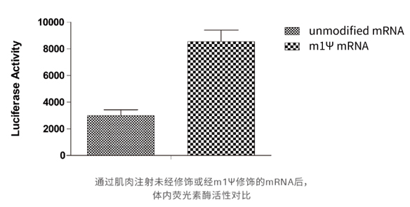 经化学修饰后的mRNA可提高体内蛋白表达水平。