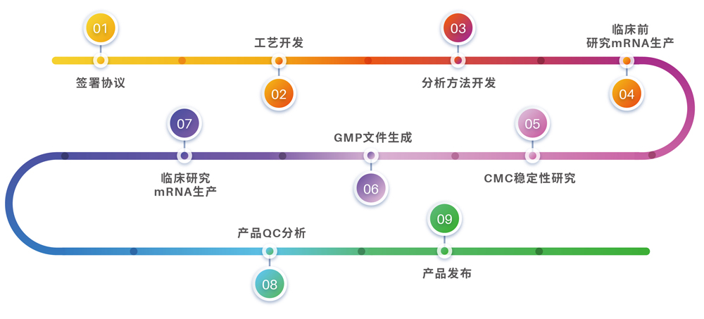 基于核酸合成方面的丰富经验以及先进的cGMP生产设备,锐博生物可为临床前开发、临床试验、商业化应用提供治疗性mRNA cGMP生产,生产规模从毫克到百克级,支持更快速的产品交付,能够极大地满足临床前IND毒理学研究、早期临床试验或商业化API需求。此外,我们还将提供所有必需的支持性文档,提供合规CMC指导,IND申报CMC材料撰写,以简化IND提交流程,全面加速临床试验进程。