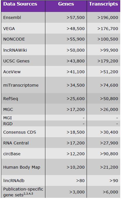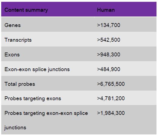 精心独特的探针设计可信赖的从编码 RNA、非编码 RNA 中检测基因水平、外显子水平及可变剪切信息。检测其它技术方法不能检测的低丰度和极低丰度转录本。