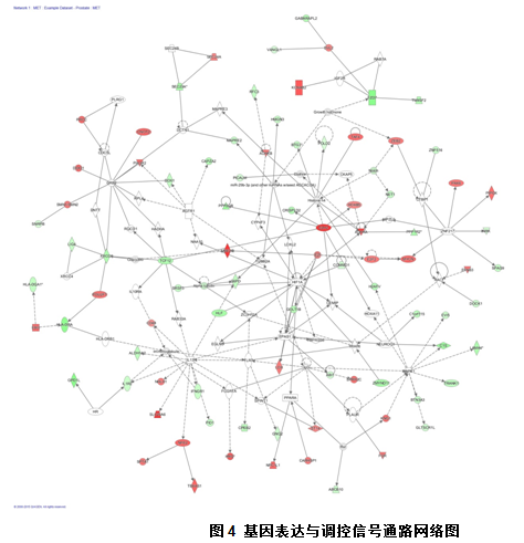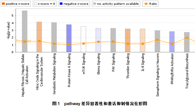通过IPA的Ingenuity® Knowledge Base数据库,进行Fisher精确检验得到具有显著性意义的pathway。运用客户特定的实验结果来计算每个pathway的z-score值预测pathway激活或者抑制。