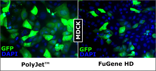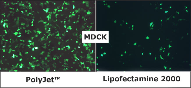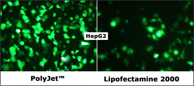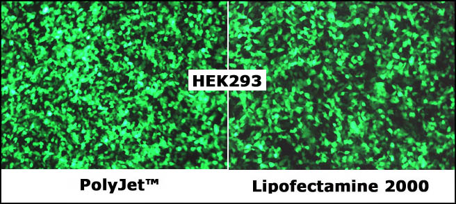 PolyJet Transfection Reagent worked equally as well as lipofectamine 2000, with