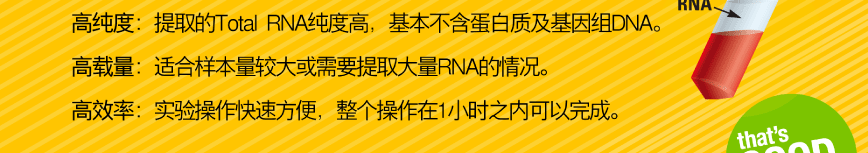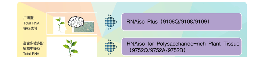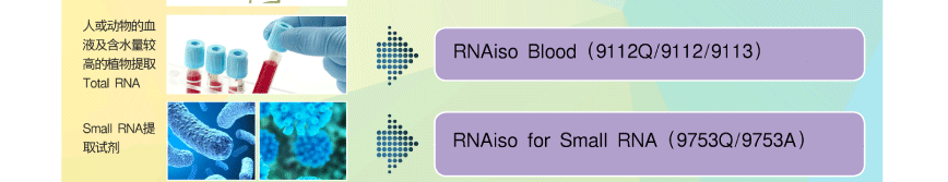 RNA提取对于科研人员来说并不陌生,要得到好的结果,选择合适的提取 试剂是最重要的一步。好的提取试剂在确保成功的同时,操作方便且经济实用。 对于动物组织、简单的植物材料、各种微生物、培养细胞的Total RNA提取, Takara公司的RNAiso Plus具有诸多的成功案例,对于血液中Total RNA的提 取,Small RNA的提取等实验,Takara为您准备了诸多RNAiso系列产品,期待 您的关注和体验!