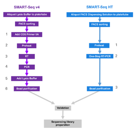 SMART-Seq v4和SMART-Seq HT工作流程的比较