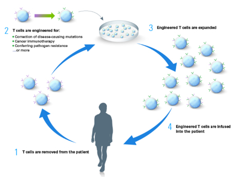 2020年2月,《科学》杂志发表文章,美国宾夕法尼亚大学Carl H. June教授团队使用CRISPR/Cas9基因编辑技术对T细胞进行了基因修饰用于肿瘤治疗,公布了临床试验结果。本文研究者使用CRISPR/Cas9基因编辑技术敲除了T细胞中两个内源性T细胞受体编码基因TCRα和TCRβ以及PD-1基因,使用慢病毒载体导入了靶标抗原。实验结果证明,经过CRISPR/Cas9技术多次编辑的T细胞不仅是安全的,而且在体内的持续时间更久,表现了持续的攻击和杀死肿瘤的能力[3]。