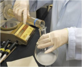 ③ 溶胶:在锥瓶或烧瓶的瓶口上盖上保鲜膜,并在膜上扎些小孔,然后在微波炉中加热溶解琼脂糖。加热时,当溶液沸腾后,请戴上防热手套,小心摇动锥瓶或烧瓶,使琼脂糖充分均匀溶解。此操作重复数次,直至琼脂糖完全溶解。