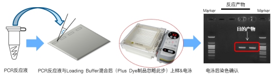 ③ 上样:PCR反应液和loading Buffer混合后,上样到胶孔中。