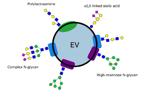 EVs的表面富含碳水化合物和糖基化蛋白质