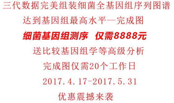 历时多年的技术经验积累,国内外借助PacBio三代测序技术于细菌基因组学研究领域发表的论文已有数百篇,为了让中国科研者更好地完成科研项目,天津生物芯片现限时推出细菌基因组PacBio三代测序优惠大放送活动。