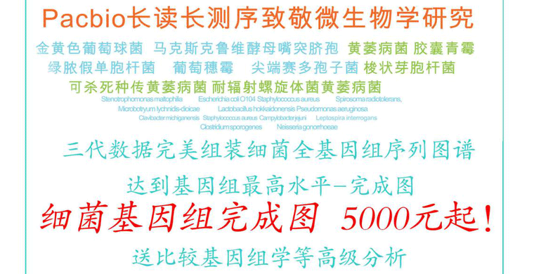 从2003年到2018年,十五年时光荏苒,十五年岁月峥嵘,天津生物芯片始终秉承“提供基因功能组学研究一站式解决方案“的理念,利用不同测序平台已经完成细菌基因组完成图测序超过1000株,相关研究成果发表在Nature、PNAS、Genome Biology、Journal of Bacteria等权威期刊发表论文超过200篇。特此借公司成立十五周年之际,回归本心,倾情推出“ 回馈微生物学研究,细菌基因组完成图 5000元 ”优惠活动,感恩十五年的信任,十五年的风雨陪伴!TBC 微生物基因组测序产品优势