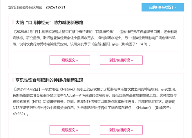FitHot订阅包含每周您都可收到过去7天权威期刊新发表的所有【话题】相关文献