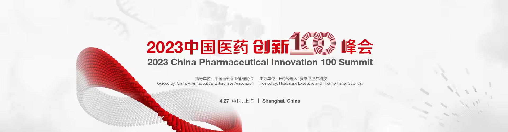 由中国医药企业管理协会指导,E 药经理人、赛默飞世尔科技共同主办,创百汇承办的2023 中国医药创新100 峰会将于2023 年4 月27 日在上海举行。我们诚挚地邀请您莅临本次大会。