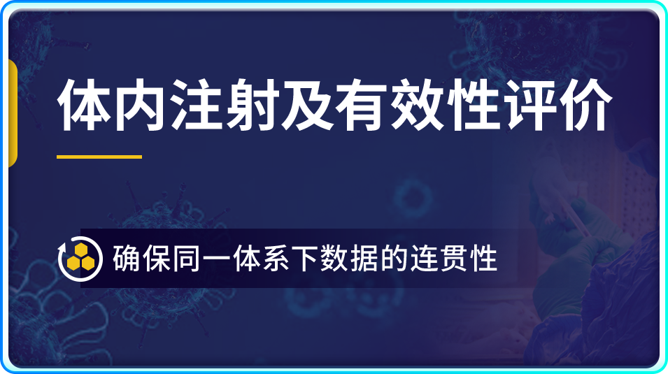 包装得到了病毒,但实验还远远没有结束,在动物体内进行注射,以及后续的一系列有效性评估,对项目的成败也有着重要的影响。赛业生物可提供多种针对大小鼠的AAV病毒注射,包括常见的尾静脉、腹腔、眼、脑、肌肉等各种局部注射;并为你接入下游的药物药效服务平台,通过生理生化分析、病理学分析、代谢分析、基因与蛋白表达分析、细胞功能检测等检测实验,让你更好地利用表型验证得出准确的研究结论。