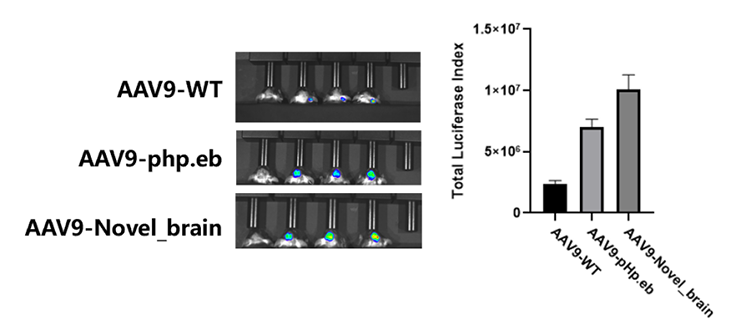AAV衣壳蛋白在基因治疗和疫苗开发中发挥着重要作用,但传统定向进化筛选技术存在着文库容量有限、成功率低、筛选效率低等诸多局限性,为此,我们通过深度学习建立了可预测的AI模型,以高效筛选用于基因治疗药物多目标性的AAV突变体,实现大脑靶向、全眼表达能力、眼部穿透力等多部位靶向预测。