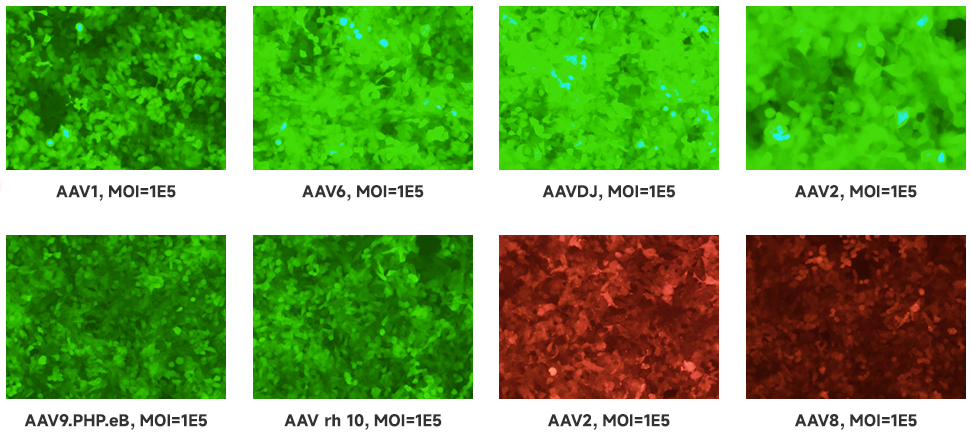 赛业生物可提供从AAV载体的设计、构建,到病毒的包装、纯化、表达分析以及功能验证等服务,为客户最大限度缩短实验周期。多种滴度规格可选,且采用严格的纯化工艺,有效实现外源human/mouse ORFs、shRNA、lncRNA和CRISPR/gRNA的表达。